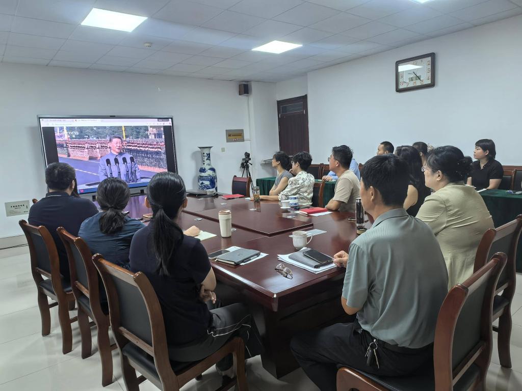9月3日上午,英国365集团党委理论学习中心组(扩大)在博文楼240会议室进行了2025年第九次集体学习,集中观看了纪念中国人民抗日战争暨世界反法西斯战争胜利80周年大会。9时许,纪念大会在北京天安门广场举行,中共中央总书记、国家主席、中央军委主席习近平发表重要讲话并检阅部队,受阅部队在长安街列阵,光荣接受习近平主席的检阅。大家全神贯注地注视着屏幕,看到整齐划一的空中护旗队、徒步方队、战旗方队、装备方队、空中...