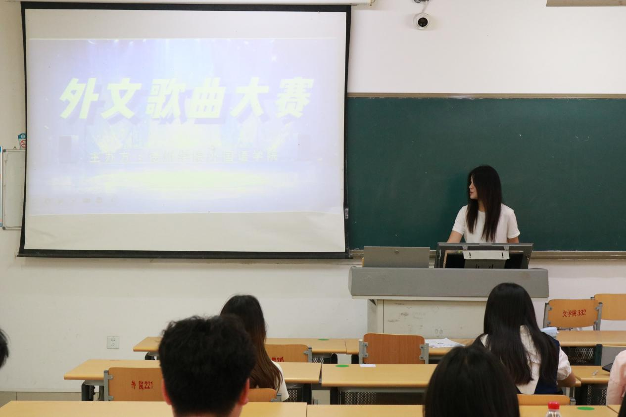 本次比赛规定选手选择外文歌曲(英语、法语、日语、韩语等均可)进行演唱。选手们按参赛顺序依次上台用标准的发音、独特的演绎方式进行表演,每位选手准备的外文歌曲都展现了积极向上的精神风貌。最后,评委们严格按照音准、节奏、音色、台风和吐字这五个方面进行打分,最后取总分的平均值作为选手的成绩。