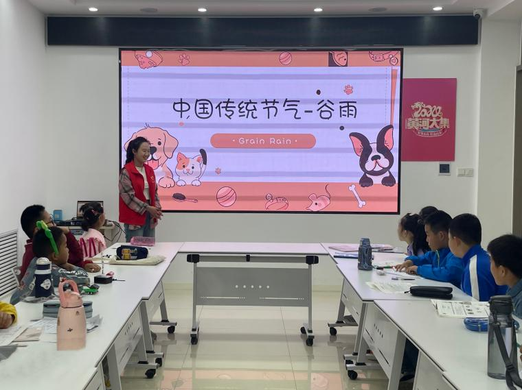 活动中,志愿者发挥专业特色,运用自身专业知识,用外语讲述中国传统节气故事及传统习俗,使小朋友们了解谷雨这一节气,呵护儿童快乐成长。随后,志愿者为小朋友们讲解部分英语单词与句子,小朋友们认真听讲,学会了许多新的知识。最后,志愿者们认真为小朋友们辅导作业,答疑解惑。