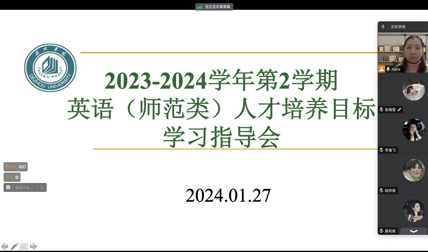 山东省师范类高校学生从业技能大赛省级决赛小学组一等奖获得者解丹妮、山东省师范类高校学生从业技能大赛省级决赛初中组二等奖及田家炳杯全国师范院校师范生教学技能竞赛优胜奖获得者杨柳、山东省师范类高校学生从业技能大赛省级决赛高中组二等奖获得者于志鑫同学做参赛经验分享, 2022级、2023级英语师范专业学生参加了本次交流会。交流会上,三位获奖同学从自己的比赛经历出发,分别就对师范生从业技能大赛的认识及比赛内容、备赛过程、获奖感受、经验教训等方面进行了经验分享,与参会同学交流了多项心得,为英语专业师范生提供了宝贵的经验和建议。