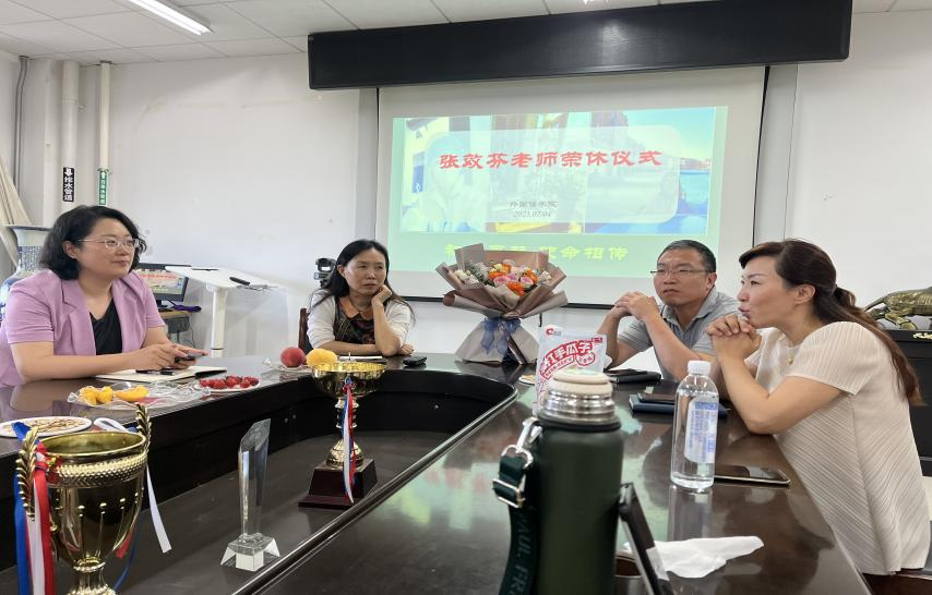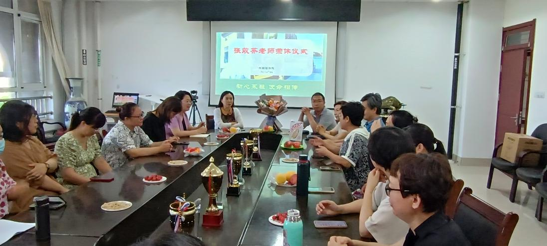 7月4日,英国365集团在博文楼206会议室举办了张效芬老师退休欢送会,学院班子成员、大学英语系教师共同参加。