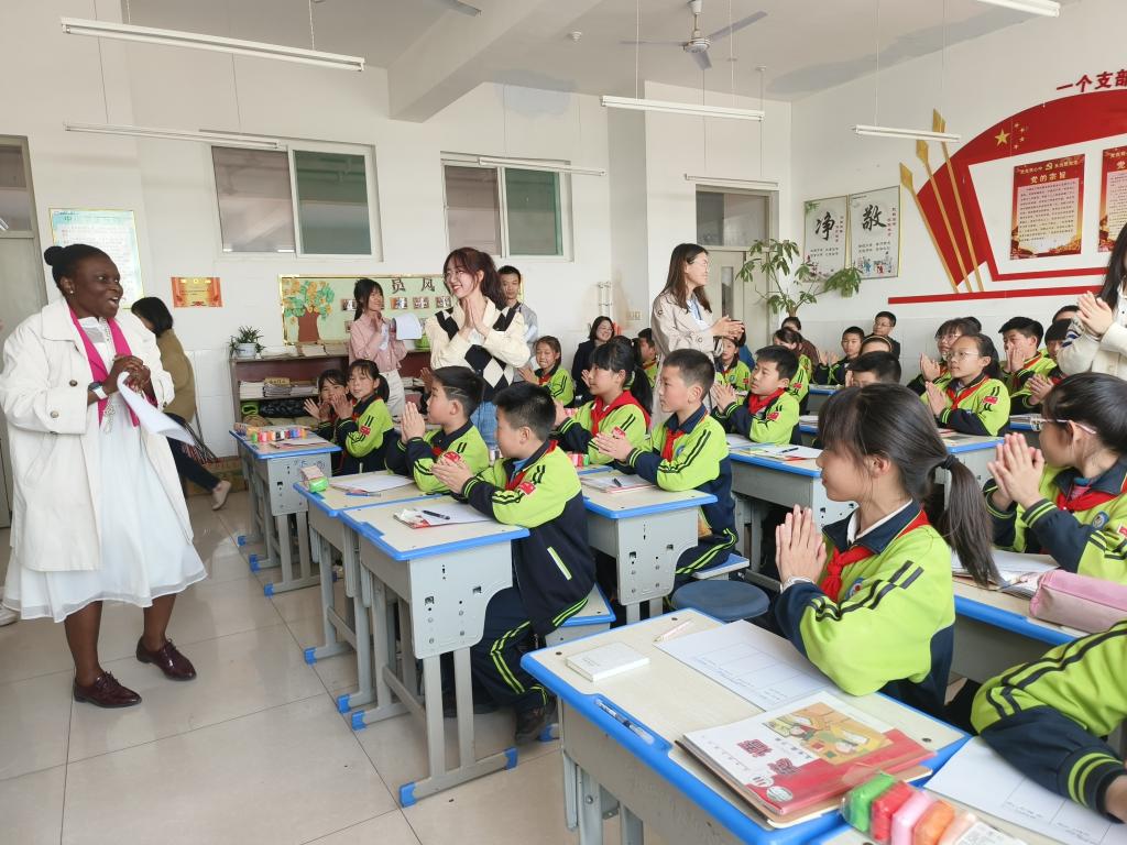 外籍教师和师范生助教采用自我介绍、游戏问答等互动环节让小学生体验到了英语学习的别样乐趣,在“貌似简单”的问题引导下,同学们大胆地用口语表达心中所想,畅所欲言。外教纯正的口语,诙谐幽默的表情,形象生动的肢体语言,与众不同的教学风格,都深深吸引了每一位学生,课堂气氛生动活泼,孩子们的学习热情空前高涨。