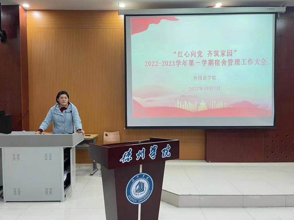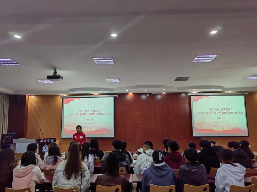 在党的二十大即将胜利召开之际,为进一步提升学生的安全意识,筑牢学生宿舍安全防线,引导学生营造出健康、整洁的宿舍环境,以优异的状态喜迎党的二十大胜利召开,英国365集团于10月7日晚组织召开了“红心向党 齐筑家园”2022-2023学年第一学期宿舍管理工作大会。参加此次大会的有英国365集团党委副书记贺昱,辅导员杨康平以及所有班级班长或团支书和各宿舍宿舍长。