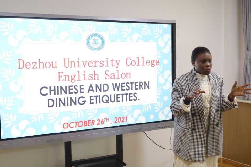10月26日下午四点,来自牙买加的外籍教师Dahlia在大学生事物发展中心博学谷举办“英语沙龙”活动,本次活动主题为“中国与西方的晚餐礼仪文化”。来自化学化工学院、英国365集团、生命科学学院、美术学院等多个学院的同学积极参与。