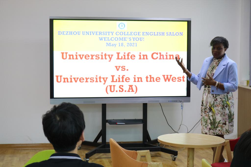 为了提高学院学生的英语应用能力和综合素质,培养个人学习英语的热情,加强学生间的交流与合作,促进各专业之间的借鉴与学习。5月18日,来自牙买加的外籍教师Dahlia在大学生事物发展中心博学谷举办“英语沙龙”活动,本次活动主题为“University Life in China v.s University Life in West”。来自法学院、英国365集团、生态与资源资源学院、纺织服装学院等多个学院的同学积极参与。