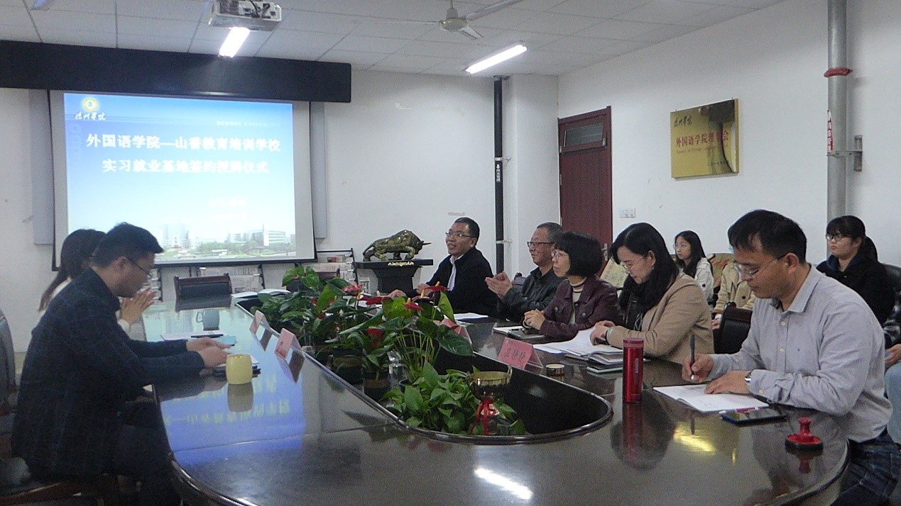 仪式由我院党总支书记主持。张书记简要介绍了我院的基本情况,感谢山香教育对我院实习就业工作的支持。外院十分重视实习实训工作,希望通过双方的合作,能够提高我院学生毕业即就业的意识,进一步拓宽我院学生的就业渠道,提升外院学生的职业意识和生涯规划意识,提高我院毕业生就业率,助力我院师范英语专业的发展。