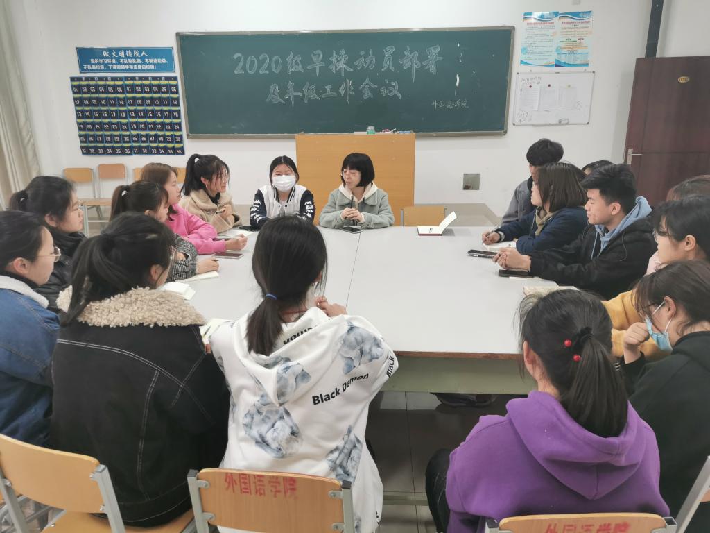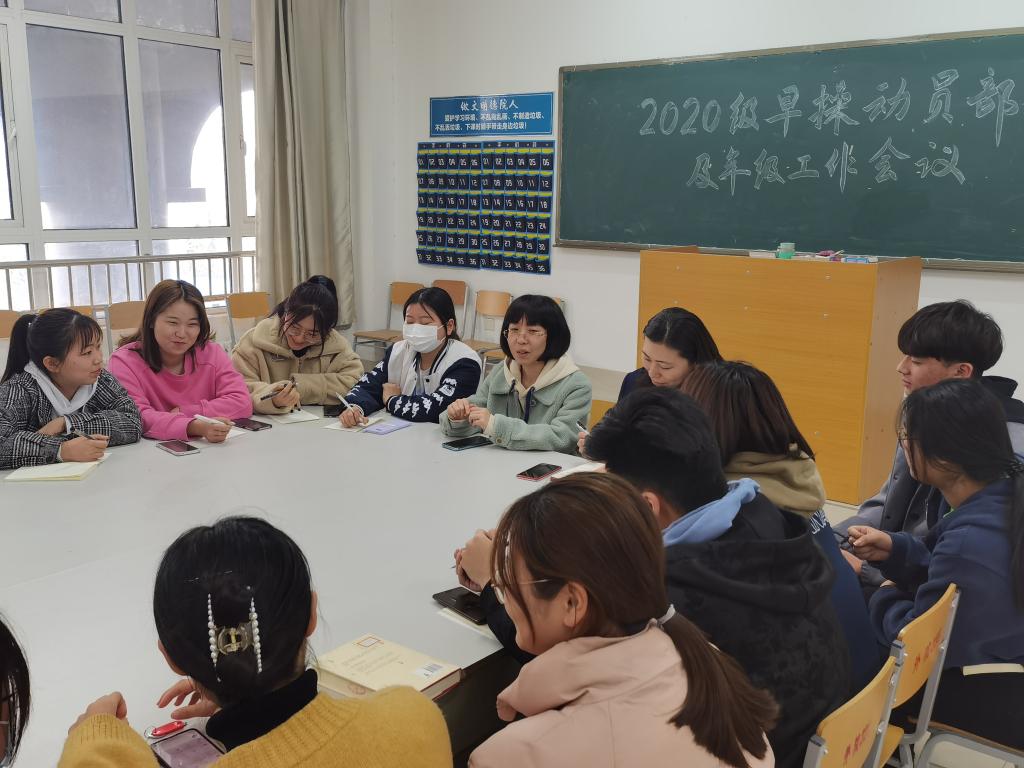 2020年3月5日,英国365集团在博文楼237教室举行了2020级学生早操动员部署工作会议。英国365集团党总支副书记李想同志参加会议并做动员讲话,相关辅导员及2020级全体班长团支书、体育委员参加大会。