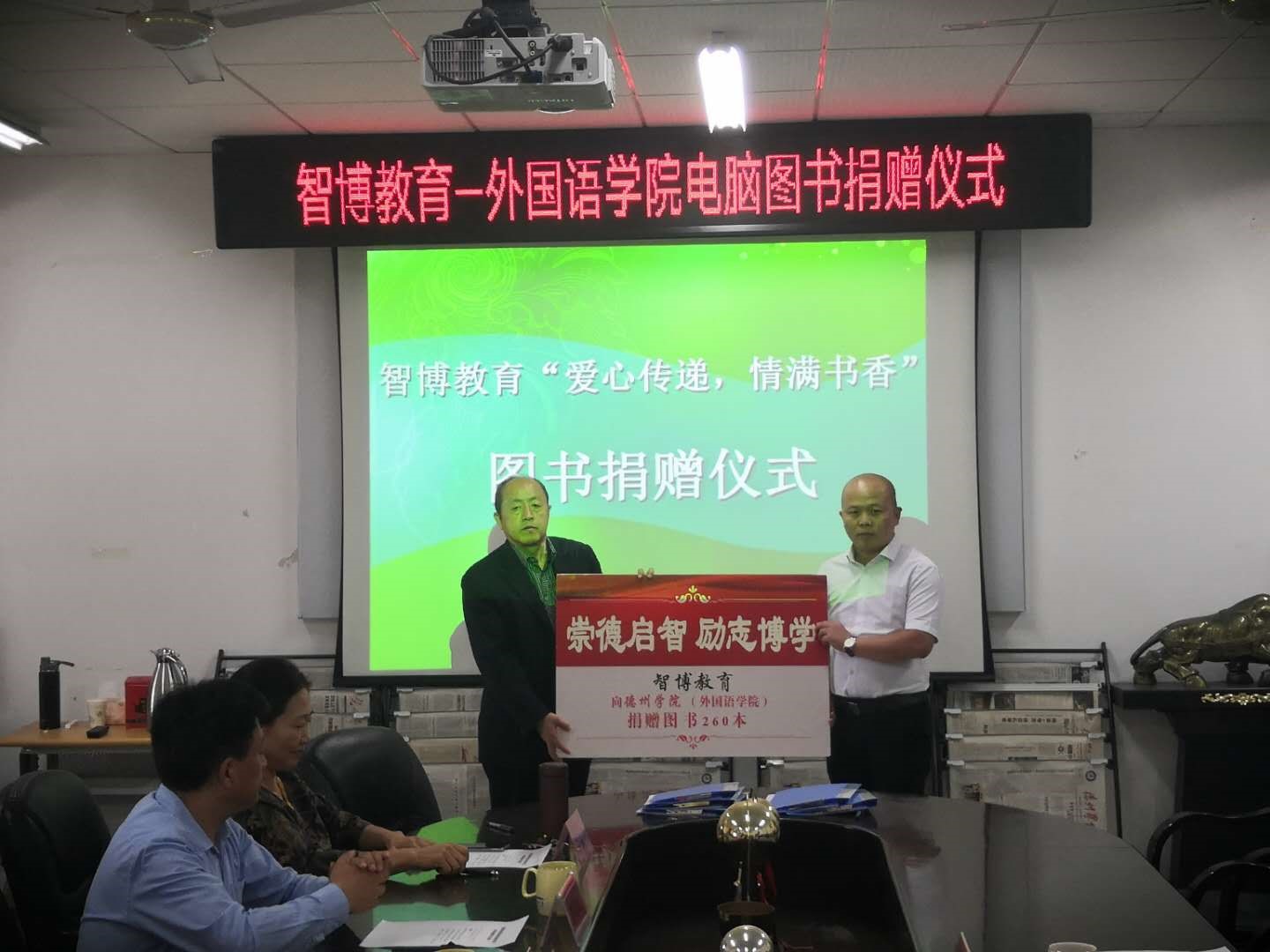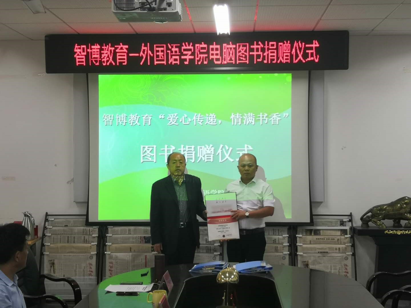 9月30日下午,英国365集团-智博教育“爱心传递,情满书香”图书捐赠仪式在博文楼206举行。365上市公司党委副书记王金利,合作发展处处长高国武,济南智博教育培训学校副校长李玉海及英国365集团党政负责人出席,仪式由英国365集团院长主持。