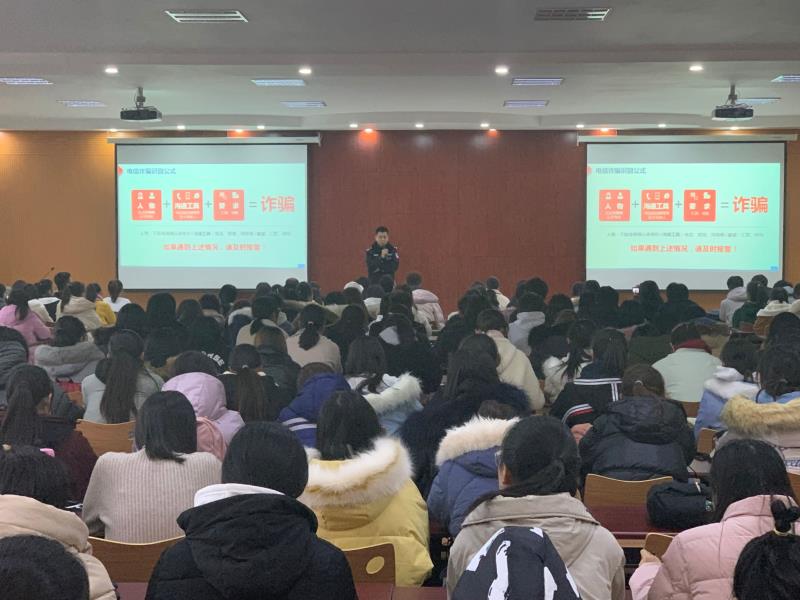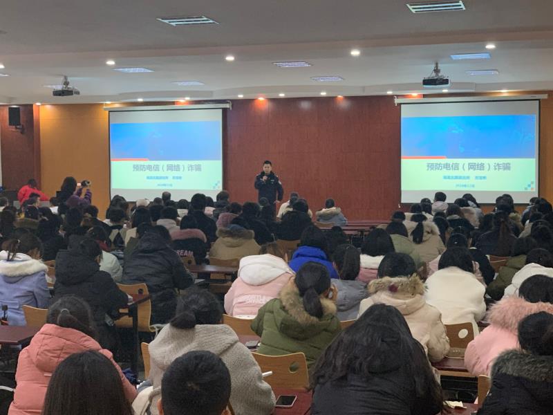 苏警官结合了近几年发生频率较高的诈骗案例,分类讲解了短信、电话、网络等常见电信诈骗类型特征及应对措施,总结了诈骗形成的缘由及其对社会造成的危害和恶劣的影响。提醒同学们要记住:对可疑人员一定要做到“不听、不信、不转账、不汇款”,积极保护自己的财产安全。