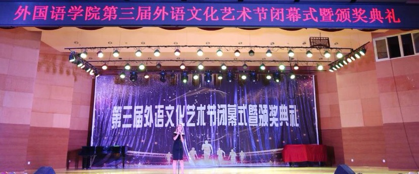 闭幕式全面回顾了本届外语文化艺术节的各项活动,包括竞赛类、语言类、实践类、讲座类等丰富多彩的活动,并邀请我院党总支书记冯琨、院长张国强、党总支副书记李想、北京译点科技有限公司江心波先生、山东翻译协会秘书长姜迪先生、团总支书记张萌萌、辅导员张建英、杨康平为外语文化艺术节系列活动中取得优异成绩的学生颁发荣誉证书,让现场观众享受了一场内涵丰富、格调高雅的视听盛宴。张国强院长在闭幕式上做了晚会致辞,他对本届外语文化艺术节给予高度评价,并指出,第三届外语文化艺术节系列活动参与率高、普及面广,兼具新颖性、权威性、实效性,实现了多元、参与、普及、提高的活动宗旨。张院长对全院同学提出三点希望:希望同学们以语言为桥梁,提高自己的学习能力,不断培养自己的全球视野和人文情怀;希望同学们广泛参与丰富多彩的校园文化活动,努力在第二课堂活动中检验和提升自己的创新精神与实践能力;希望同学们不忘初心、牢记使命,用自己的行动打造外院文化,共圆外院梦、青春梦。