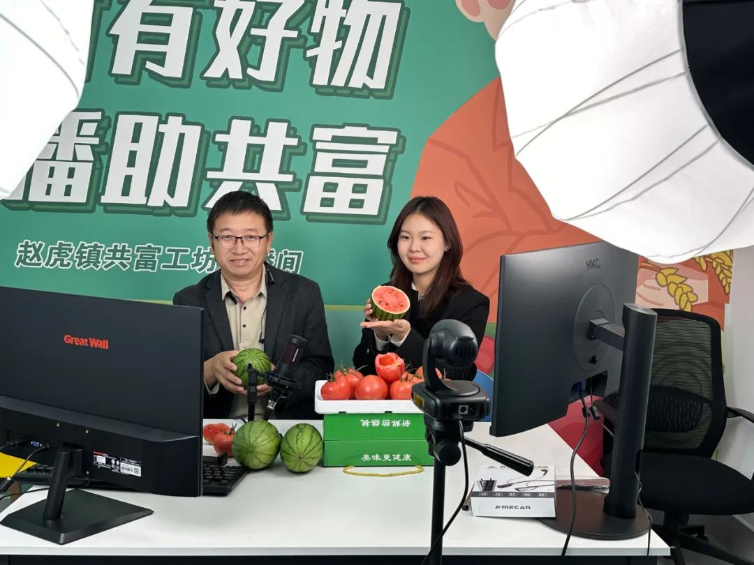 为推动赵虎镇经济发展,提高电商应用水平,助力乡村产业增长与质量提升,青马学员在接受直播培训后,迅速投身线上直播带货实践,为赵虎镇的西红柿、牛奶小西瓜、冬枣等农产品代言。直播过程中,青马学员们还巧妙设置了互动环节,通过互问互答、才艺展示等方式吸引观众,积极回应解答着观众们关于农副产品种植,品质保证以及购买方式等方面的问题,进一步提升了直播的活跃度和关注度,增强了观众的信任感和购买意愿。