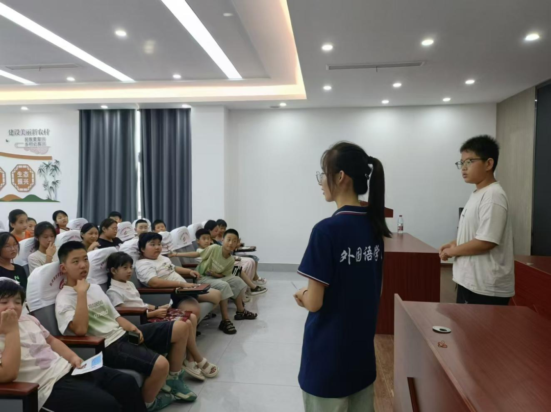 在赵虎镇,实践团队为当地的孩子们精心策划了一场主题丰富的英语角活动。通过“快乐水果”、“奥运知识小课堂”和“防溺水安全教育”等主题活动,孩子们在游戏中学习英语,在互动中增长知识。这些活动不仅为孩子们打开了英语学习的大门,也为他们的暑期生活增添了色彩。