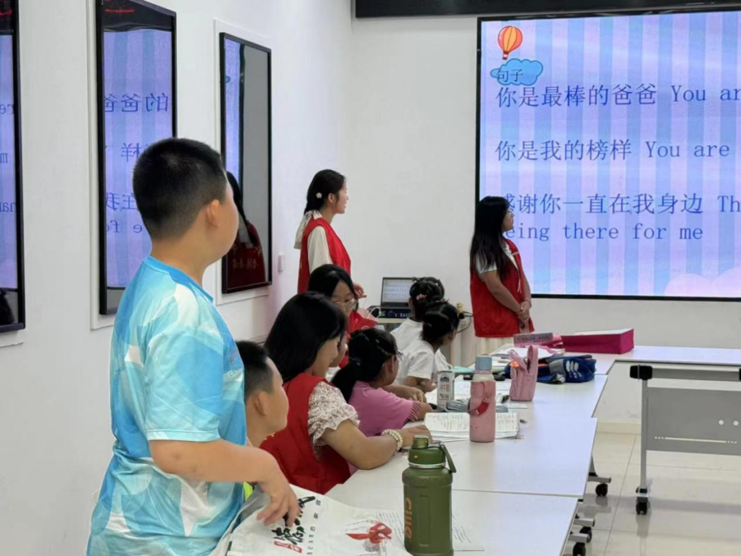 志愿者们先用英语为小朋友们介绍父亲节的由来和意义,再教小朋友们学习简单的英语短句,让大家可以利用学到的新知识表达对父亲的爱意。随后,志愿者们为小朋友们分发绘画材料和泥塑工具,开展绘画出心目中的父亲、记录和父亲发生的趣事、写下给父亲的祝福语等活动,让同学们向不善表达的父亲,大大方方表达出自己的爱,感恩父亲的付出。