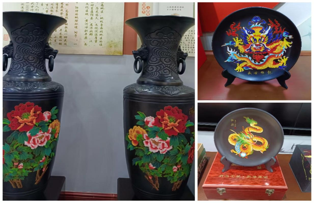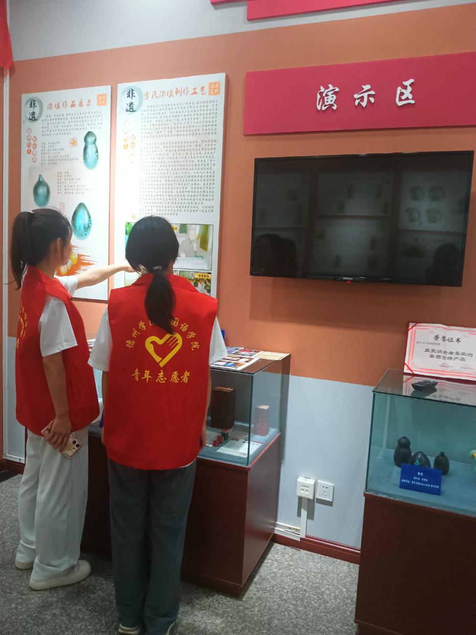 在文化馆的展台上,德州黑陶以其漆黑的色泽和温润的光泽吸引着目光,散发着迷人的魅力,静静地向人们诉说着古老的历史和文化传承。这些器皿不仅造型古朴,更通过微雕技艺展现出精细的文字和图案,彰显了制作者精湛的技艺和耐心。德州黑陶,作为中国新石器时代制陶业的重要代表,其历史悠久,文化内涵丰富。现代德州艺人的挖掘与创新,让这项古老技艺焕发新生,成为德州非物质文化遗产的一部分。每一件黑陶作品,都是对传统工艺的坚守和传承,让同学们在观赏中感受到历史的厚重和文化的深度。