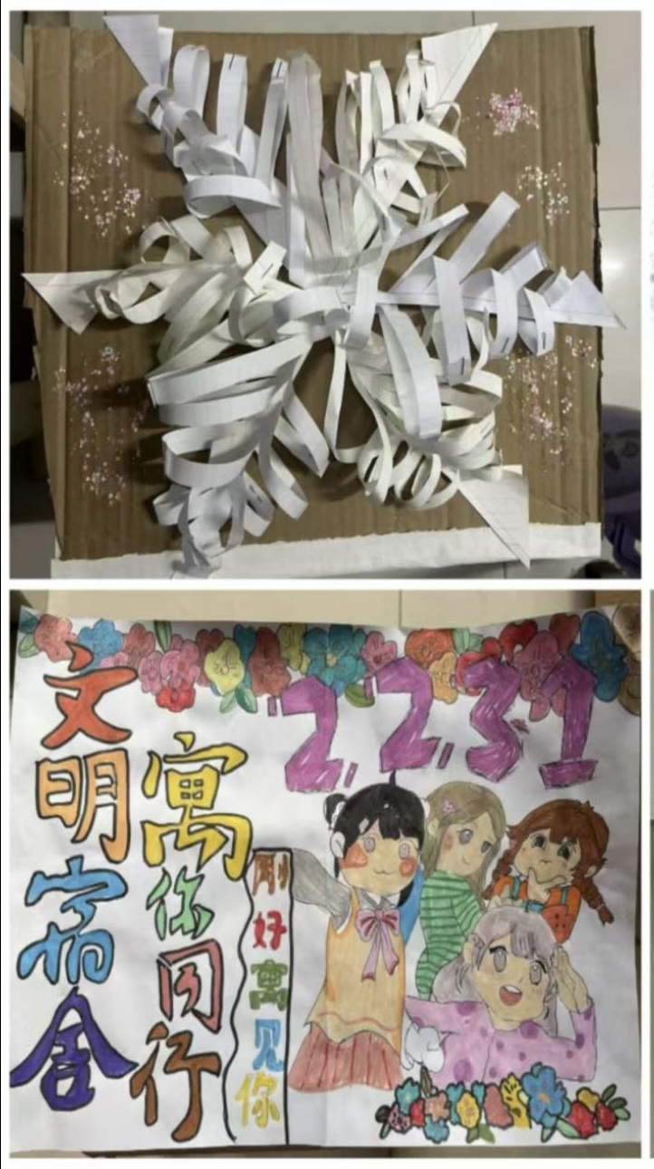活动通知一经发布,受到同学们的积极响应,大家纷纷行动起来设计具有自己寝室特色的手工作品,以巧手为笔,以材料为墨,在指尖的舞动中,赋予平凡物件独特的生命与温度。每一个精心制作的手工艺品,都将成为这个冬天独一无二的温暖印记,承载着宿舍成员们的创意与情谊展现属于青春的美丽风采。经评审,最终有一件作品获得一等奖、两件作品获得二等奖、三件作品获得三等奖。通过本次活动,不仅锻炼了同学们的动手能力,在寒冷的冬天给大家带来温暖和乐趣,还有利于增进彼此之间的了解和友谊,增强团队精神,共同营造一个和谐、温馨的校园环境。