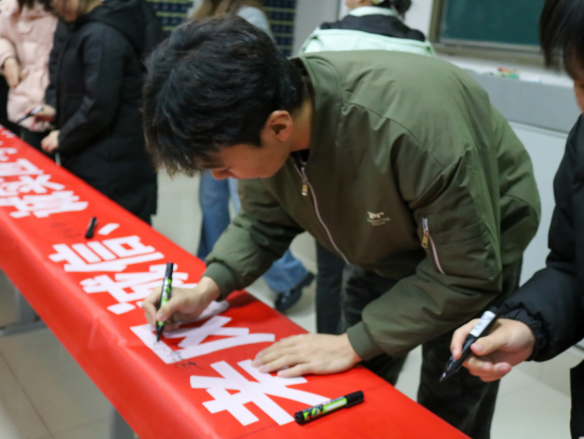 随后向同学们发放了诚信考试贴纸,小小的贴纸时刻提醒同学们将诚信意识铭记于心,外化于行,坚守底线,诚信应考。全体参会同学在诚信应考横幅上依次签字承诺。