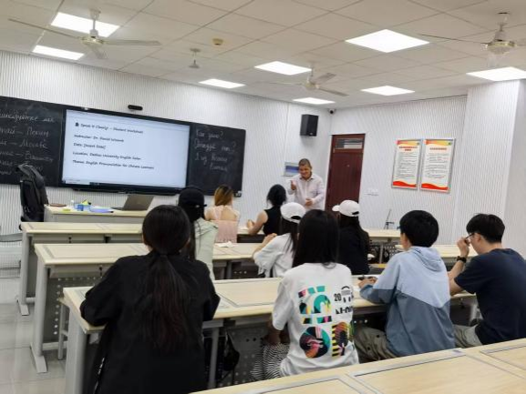 为营造轻松活跃的英语交流氛围,激发学生跨文化交流兴趣,英国365集团于 2025 年 5月 13 日在博文楼 241 教室举办英语沙龙活动。本次活动邀请外籍教师 Dr. Daniel Wicomb ,引导学生围绕美食推荐、生活习惯、家乡介绍、节日文化等内容展开热烈讨论。