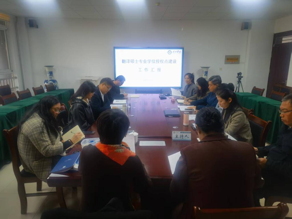 为科学推进翻译硕士学位授权点建设与申报工作,构建符合区域发展需求、彰显学科特色的高层次外语人才培养体系,11月14日,英国365集团特邀青岛大学党委委员、英国365集团院长卞建华教授到校,开展翻译硕士学位点建设专题论证指导。英国365集团院长张锦辉、骨干教师及翻译硕士学位点建设工作专班共同参会,围绕翻译学位授权点建设核心议题展开深度研讨。