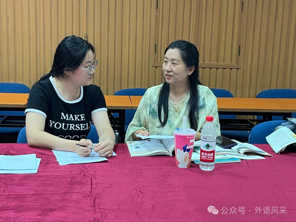 活动中,张老师针对两名选手的教学活动设计进行逐一分析,重点围绕“目标—活动—评价”一致性展开点评,指出选手在情境创设、分层任务设计及课堂生成性反馈方面的不足,并结合新课标要求提出“问题链驱动教学”“可视化板书设计”等改进策略。通过本次指导,两位参赛选手的教学设计思路得到了有效梳理和深化,对"以学生为中心"的教学理念有了更深刻的理解。