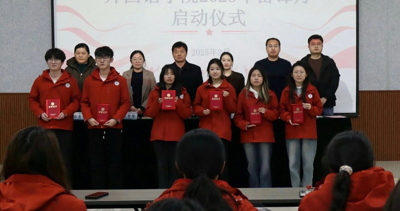 仪式在国歌声中拉开帷幕。相关负责人宣读活动方案,方案涵盖“外语英语角”支教 “追锋行动・社区实践”“守护绿色家园”“指尖雷锋・助力银龄跨越数字鸿沟”等六大主题,通过搭建多远平台引导学生将雷锋精神融入日常。2022 级商务英语专业贾月洋同学作为志愿者代表发言,同时学院表彰了 2024 年度优秀志愿服务团队,激励更多同学积极投身志愿服务,践行雷锋精神。