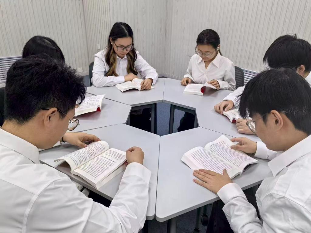 梁福顺同学带领全体学员通过读原文、析内涵的方式,深入学习《中国共产党第二十届中央委员会第四次全体会议公报》,随后,学员们分小组进行研讨。大家结合外语专业学习与志愿服务经历,分享对“青年如何在文化交流中践行党的二十届四中全会精神”“如何用专业所长讲好中国故事”等话题的思考。
