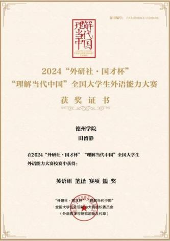 2024年10月,“外研社·国才杯”英语笔译校赛银奖