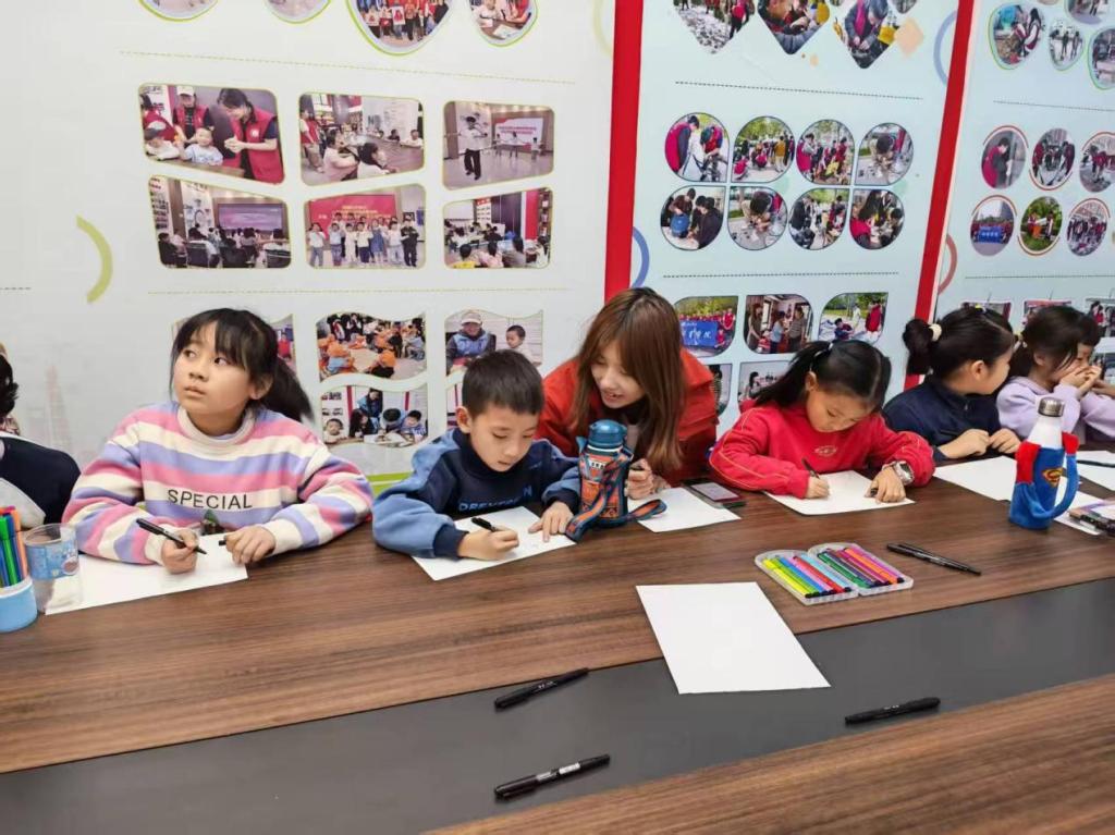 12月27日,2022级商务英语一班、2022级商务英语二班团支部走进绿城新区,开展“魔法数字兄弟,英语互动课堂”志愿服务教学活动,将教学内容延伸至10-100的整十数英语词汇。活动中,志愿者们先引导孩子们为黑白线稿涂色创作,再鼓励大家结合课程所学,用整十数英语表达数出画面中对应元素的数量。手工实践与英语运用的有机结合,让抽象的数词知识变得具象可感,既巩固了学习成果,又激发了孩子们的创作热情。