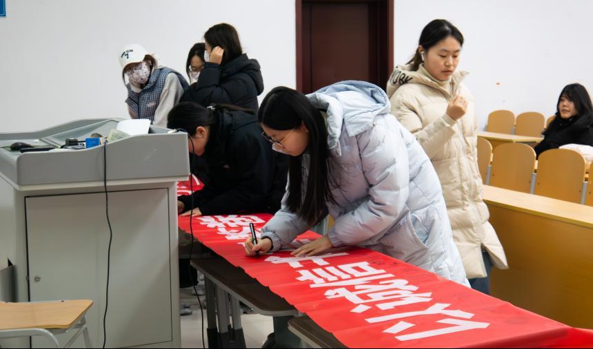 为发挥学生骨干的模范带头作用,学院还组织诚信考试条幅签名活动。学生会成员、班团干部、学生党员等学生骨干作为学生代表,依次在印有“以诚信书写答卷 用实力赢得佳绩”的红色横幅上郑重签名,承诺在即将到来的期末考试中遵守考场规范,坚守诚信本心,坦荡应考、诚信作答,用实际行动践行诚信应考的准则。