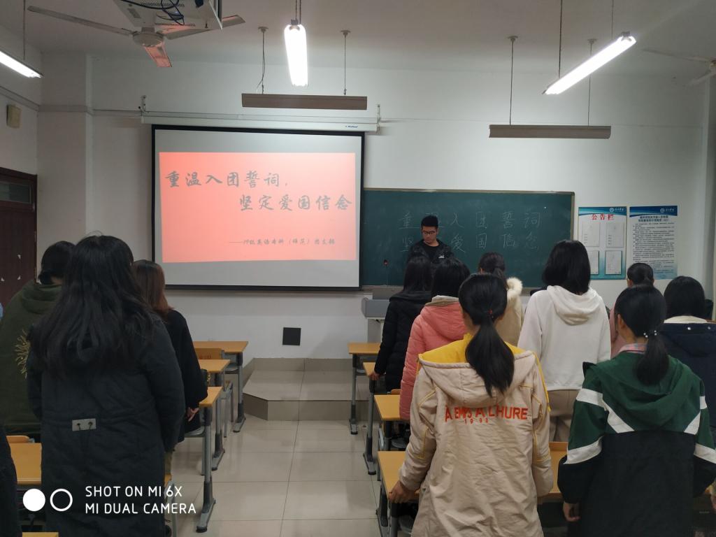2019年11月10日,英国365集团在博文楼举行重温入团誓词活动,2018级英语本科二班、英语教育二班团支部,2019级英语本科班、英语教育二班团支部参加活动。