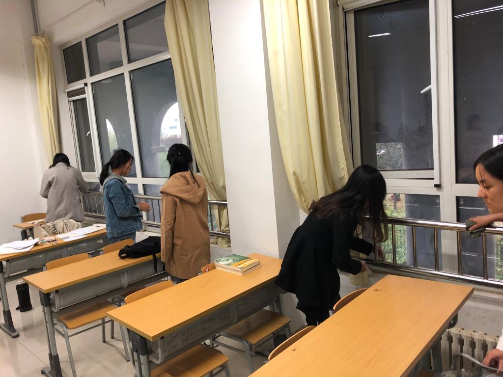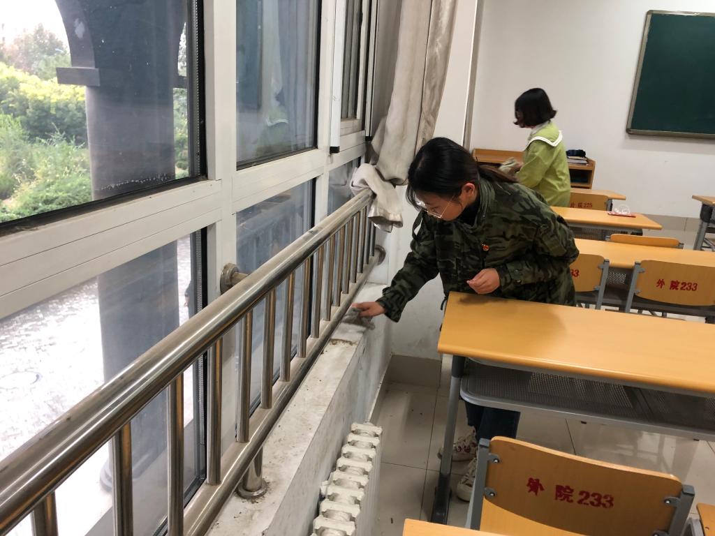 各党员、入党积极分子三五人一小组,分工合作,干净利落地将每间教室的桌椅摆放整齐并把掉落的窗帘重新挂起来,每个人脸上都洋溢着为学生服务的幸福感。受各党员、入党积极分子的感染,许多学生也主动加入到活动中为学院做出自己的一份贡献。