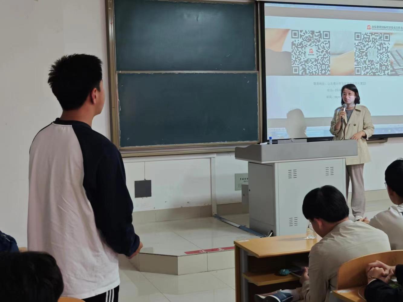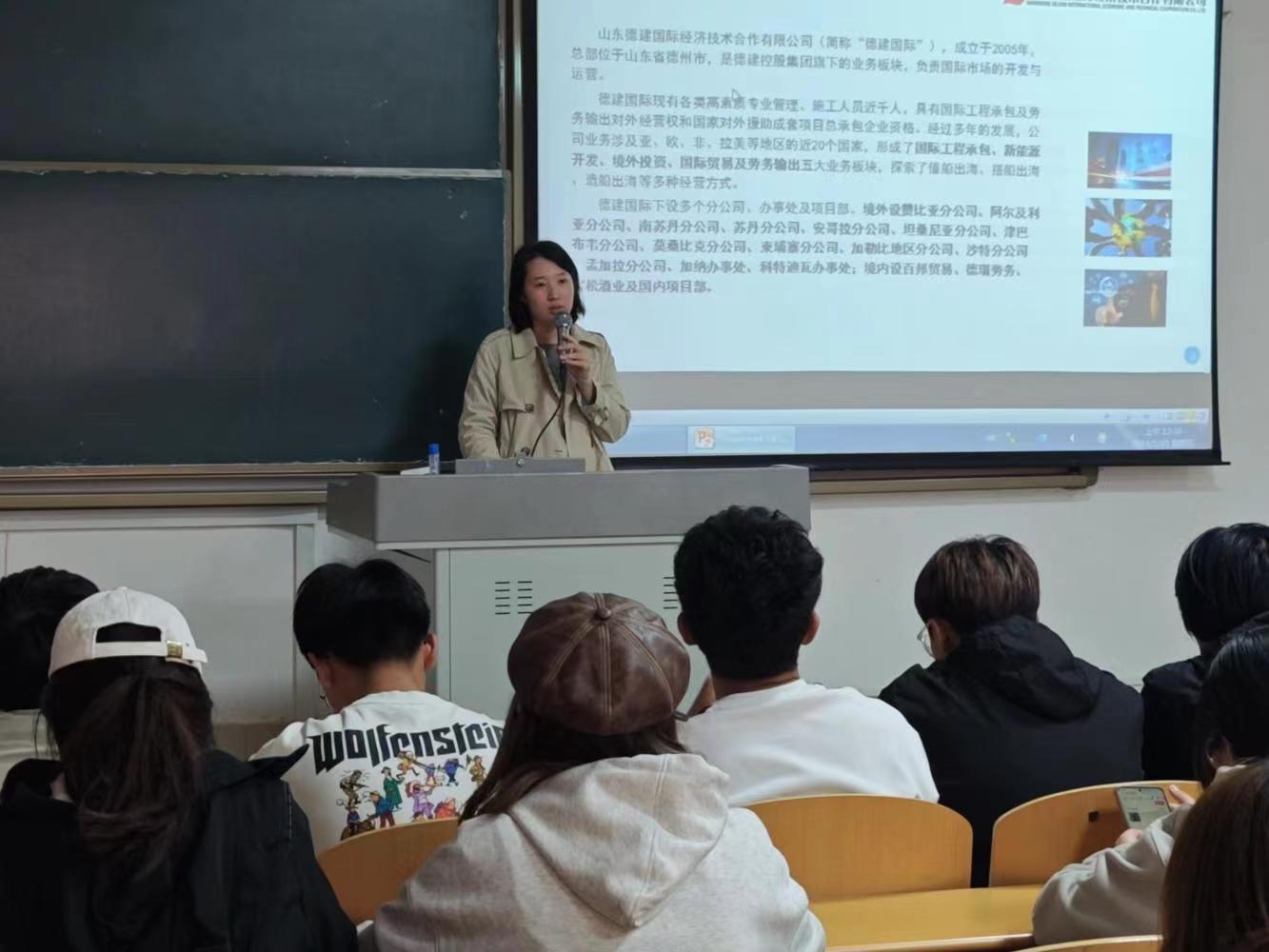 此次会议邀请了德建国际的专业人士来为同学们详细介绍了德建国际的一系列成就,以及分布在海外的分公司所获得的成就。