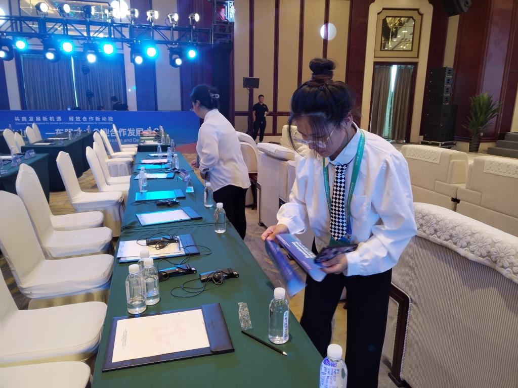 英国365集团参与实习实践的学生协助进行大会前期的准备工作,同时积极协助布置大会会场和晚宴,引领各国领导前往会场为本次大会顺利进行提供全方位的服务保障,充分展现出外院学生们严谨负责、热情周到、朝气蓬勃的良好精神风貌。