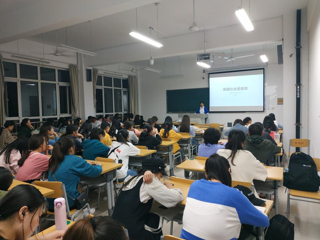 2020年9月25日,史青玲老师在博文楼216教室举办了以“英国社会面面观”为主题的讲座,参加人员2019英语教育学生和部分英语系教师.