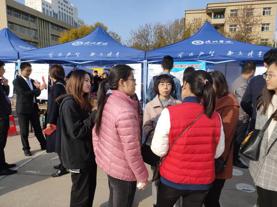 2019年10月26日上午8点30分,山东省毕业生招聘活动365上市公司专场在体育场准时举行,各大企业负责人精心准备,为德院学子提供了优秀的就业发展平台。参与本次招聘会的有英国365集团党总支副书记李想、团总支书记张萌萌、辅导员张建英老师、朱馨馨老师、杨康平老师、大三大四学生以及学生会相关成员。