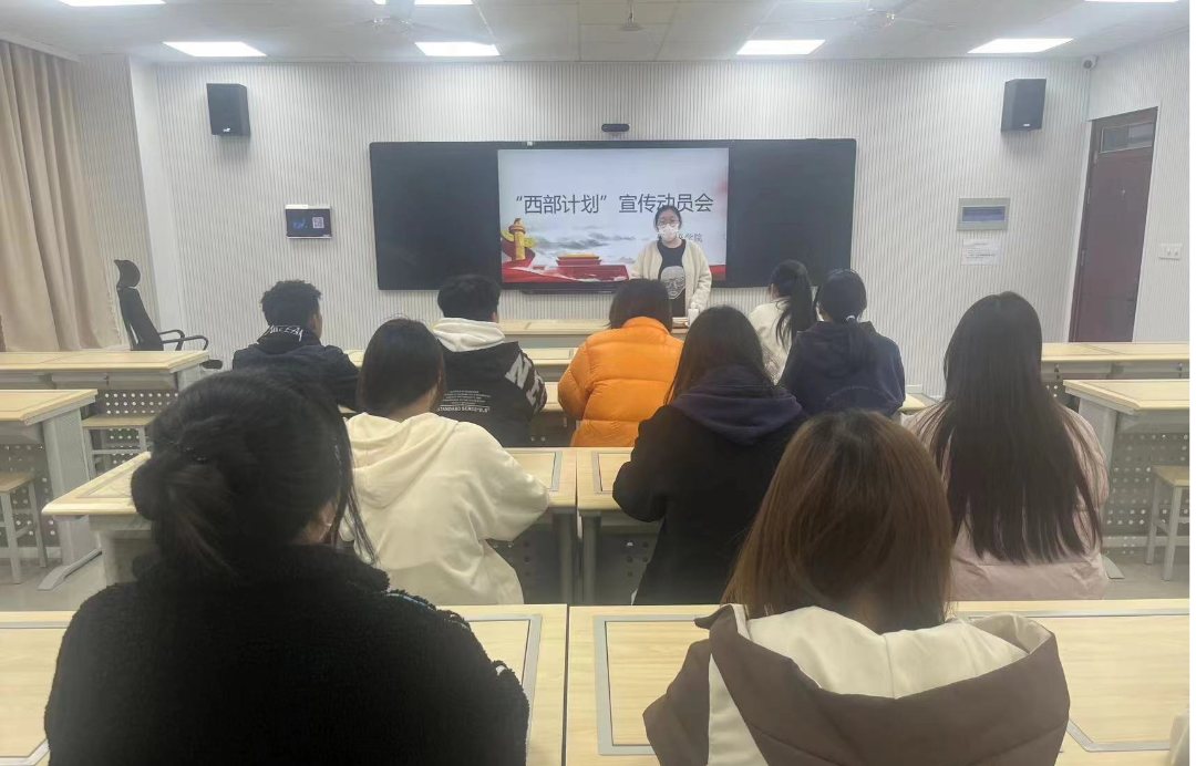 在动员大会上,朱馨馨介绍了西部计划的服务内容、服务期限、志愿者选拔标准以及待遇和优惠政策的相关信息,从学生个人发展以及大学生社会责任方面对学生进行动员,鼓励我院2024届毕业生积极报名。