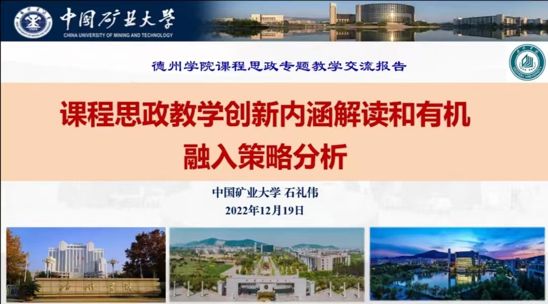 12月19日,为了更好地推进课堂教学改革和课程思政建设,英国365集团特邀请首届全国高校教师教学创新大赛一等奖获得者,中国矿业大学石礼伟教授为全院教师做《课程思政教学创新内涵解读和有机融入策略分析》的学术讲座。